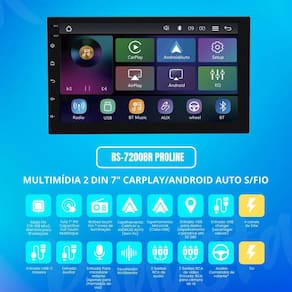 Central Multimídia MP5 7" Polegadas Carplay e Android Auto Sem Fio, Bluetooth 5.0 - Roadstar RS7200BR Pro Line