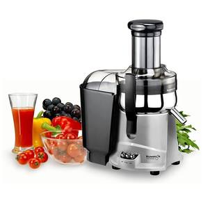Centrífuga de Frutas KUVINGS NJ 9500U com 2 velocidades, aço inoxidável, motor de 350W, tubo de alimentação extra largo, sistema de suco contínuo e fácil limpeza.