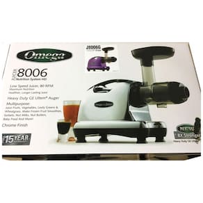 Centrífuga de frutas Omega Nutrition Center com dois estágios, 110V, 150W, design de baixa velocidade (80 RPM) para preservar nutrientes e enzimas, alto rendimento de suco, operação silenciosa, e versatilidade para preparar manteigas de nozes, leites vegetais e sorvetes.Nº de velocidades
