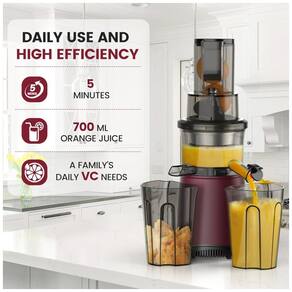 Experimente uma eficiência de extração de suco incomparável com nossa prensa a frio de espremedor lento, que integra tecnologia antientupimento e um motor robusto de 200 W. Ele opera com um ruído silencioso de 65,0 DB, permitindo que você faça sucos matinais sem perturbar a paz da sua casa.