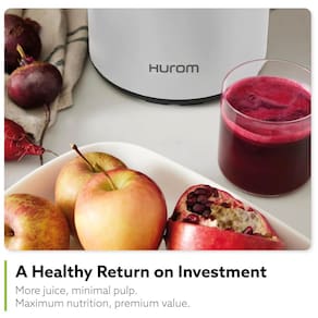 Centrífuga de Frutas Hurom H400 com tecnologia Slow Squeeze, motor silencioso, câmara sem filtro, funil de alimentação automática e extração de suco otimizada.Nº de velocidades