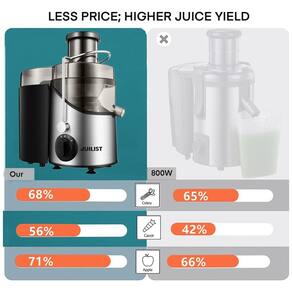 Espremedor centrífugo com 3 velocidades, potência de 400W (máxima 800W), calha de alimentação de 3 polegadas, design compacto, acessórios próprios para lava louças livres de BPA e PFOAs, disco de corte de aço inoxidável, proteção automática contra superaquecimento e trava de segurança dupla. Tecnologia de motor otimizada para melhor rendimento de suco e nutrição.Nº de velocidades