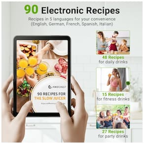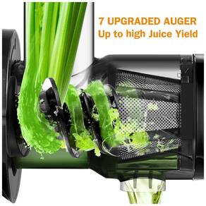 Centrífuga de frutas e vegetais AMZCHEF com motor reversível, sistema espiral de 7 estágios, função de moedor de carne/triturador, calha de alimentação pequena para evitar sabor amargo, chip de proteção inteligente e função reversa anti-travamento.Nº de velocidades