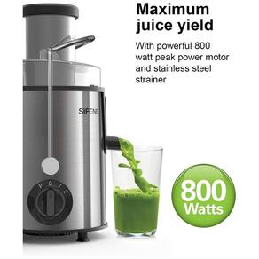 Rampa larga de 7 cm, fácil de limpar, processamento de frutas inteiras, motor de pico de 800 W, proteção contra superaquecimentoNº de velocidades
