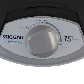 Centrífuga de Roupa Suggar Giromax com capacidade de 15kg de roupas molhadas (equivalente a 5kg de roupas secas), timer de 6 minutos, alta eficiência (1750 rpm), sistema de trava patenteado, alça lateral e porta fio integrado.Secagem a frio