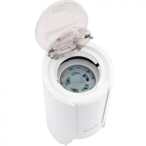 Centrífuga Mueller Fit com capacidade de 12,6kg, cesto de polipropileno, sistema de segurança na tampa e pés antideslizantes.Programas
