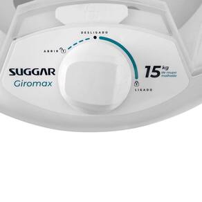 Características: Marca: Suggar Modelo: Giromax - CT150 Tipo: Centrífuga de roupas Capacidade de roupa seca: 5 kg Capacidade de roupa molhada: 15 kg Abertura da tampa: Superior Saída de água: Automática Timer: Sim Grade de proteção: Sim Alça para transporte: Sim Cesto removível: Não Desligamento automático: Sim Trava de segurança: Sim Eficiência energética: A Potência: 180W Consumo: 0,18kWh