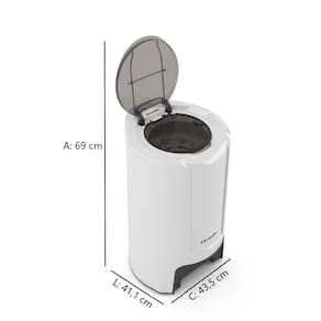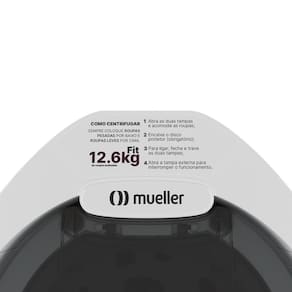 Centrífuga de roupas Mueller Fit com capacidade de 4,2kg, 1720 rpm, trava de segurança com dupla tampa, pés antideslizantes e cesto interno de plástico.Programas