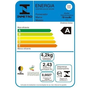 - Eficiência de centrifugação: 2,47 (127V) - 2,43 (220V)