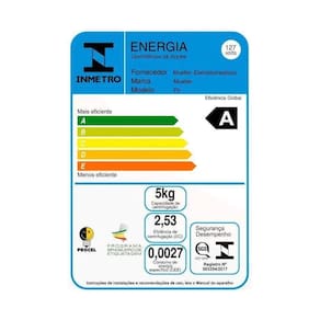- Consumo de energia para secagem: 127V: 0,0112 kwh / 220V: 0,0114 kwh