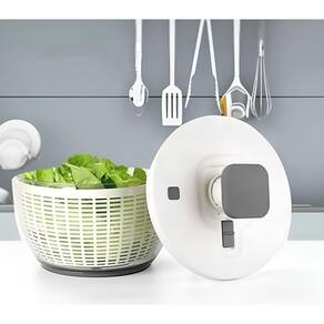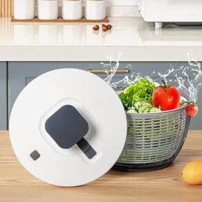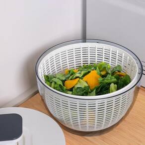 Centrífuga de salada com cesta e bowl transparente. Capacidade de 5 litros. Ideal para lavar e secar folhas, ervas e vegetais. Remove excesso de água rapidamente. Bowl transparente permite visualizar o processo. Cesta peneira removível. Tampa com sistema de rotação manual. Fundo antiderrapante.Nº de velocidades