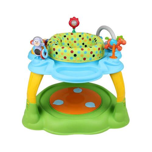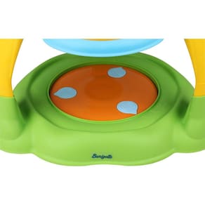 Ele é recomendado para crianças até os 18 meses com peso máximo de 11 quilos, sempre acompanhada de um adulto. A criança precisa conseguir se manter sentada para que seja acomodada corretamente no assento - acolchoado, removível e lavável - que gira 360º, facilitando o acesso a todos os brinquedos que compõem a base superior.