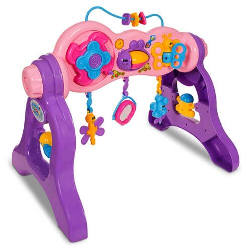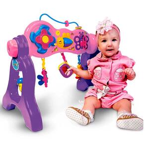 O Play Gym Menina é completo para auxiliar no desenvolvimento da criança em diferentes fases do crescimento girando o eixo para que mude de posição! Além de várias peças de diferentes formas e tamanhos, tem som e também conta com um espelho. Olha que fofura!