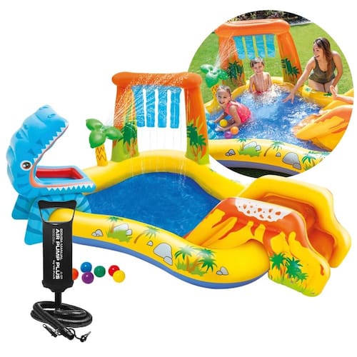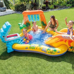 A Intex acaba de fabricar uma piscina infantil com temática e formato de dinossauro, para crianças e que não superem Fabricada em PVC e coberta de tinta atóxica, ela é resistente e não coloca em risco a saúde das crianças. O lazer ao ar livre fica muito mais divertido com esta piscininha! As altas temperaturas do verão não serão páreo para a refrescância proporcionada por este produto!