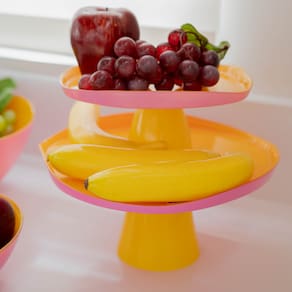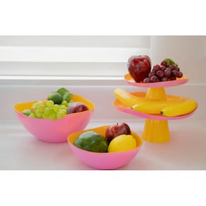 Centro De Mesa Com Pé Em Vidro Milky Amarelo E Rosa Full Fit 21x10cm - Características Gerais do Produto: • Dimensões: Centro de Mesa M Ø 21x10cm | Centro de Mesa G Ø 28x12cm • Material Principal: Vidro • Linha: Milky • Informações Adicionais: Cuidado ao apoiar sobre mesas e prateleiras e evite o atrito entre as peças para evitar riscos na superfície das mesmas; Para manter o brilho do produkto é aconselhável lavar à mão, com o lado macio da esponja (lado amarelo) e detergente neutro