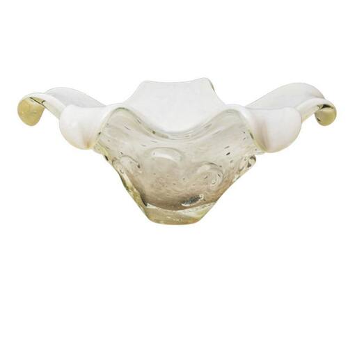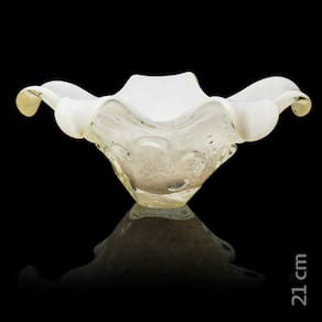 O Centro De Mesa Em Cristal Murano Da São Marcos é uma peça decorativa produzida 100% artesanalmente com a técnica secular e originária da Itália, a qual com muita maestria e criatividade são desenvolvidas e preservadas no brasil pela Cristais São Marcos desde 1962. A tradição do cristal murano e a inovação em detalhes, formas e cores, trazem requinte para a decoração. O colorido do murano em especial, torna-se um coringa na hora de decorar e produz um efeito muito bonito em locais com luz natural, não dependendo de nenhum outro elemento para se destacar. As peças em cristal murano, são atemporais, aposte nelas como a estrela da decoração ou ainda para harmonizar em combinações com diferentes artigos para compor um ambiente. Ficha Técnica Marca: São Marcos Modelo: Centro De Mesa Em Cristal Murano Pérola São Marcos Ref.: 4218PE Material: Cristal Murano Cor: Pérola Medidas A x C x L : 45 x 45 x 21 cm Peso: 8300g Conteúdo Da Embalagem: 01 Centro De Mesa Em Cristal Murano Pérola São Marcos Junto com as peças em murano, leve ainda um pouco de história. Uma dica é misturar diferentes muranos e criar sua coleção de arte particular. O cristal murano, tornou-se objeto de desejo por suas características únicas. Sendo assim, com todas essas particularidades, ele é uma ótima escolha para decorar, colecionar e ainda presentear com classe e sofisticação. IMPORTANTE: Produto produzido de forma artesanal, são admitidas nas características finais do processo de produção desse produto pequenas variações de peso, formato, cor e ainda o aparecimento de minúsculas bolhas de ar, típicas do cristal murano.