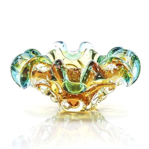 Centro De Mesa Cristal Murano Verde E Âmbar São Marcos 14cm Centro De Mesa Em Cristal Murano Verde E Âmbar - São Marcos é uma peça decorativa produzida 100% artesanalmente com a técnica secular e originária da Itália, a qual com muita maestria e criatividade são desenvolvidas e preservadas no brasil pela Cristais São Marcos desde 1962.