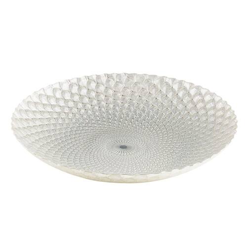 O centro de mesa de vidro Istambul da Wolff é todo composto de vidro em uma tonalidade de branco perolado e com detalhes delicados em alto relevo, perfeito para tornar o ambiente mais elaborado e glamoroso. Uma ótima combinação com frutas, flores e outros.