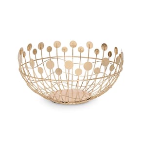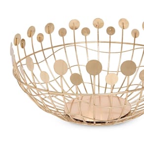Com design moderno e acabamento sofisticado, o centro de mesa em metal dourado é uma peça que adiciona elegância e estilo à decoração. Seu formato vazado com detalhes circulares traz leveza visual e destaque para qualquer ambiente, sendo ideal para compor mesas, aparadores e bancadas.