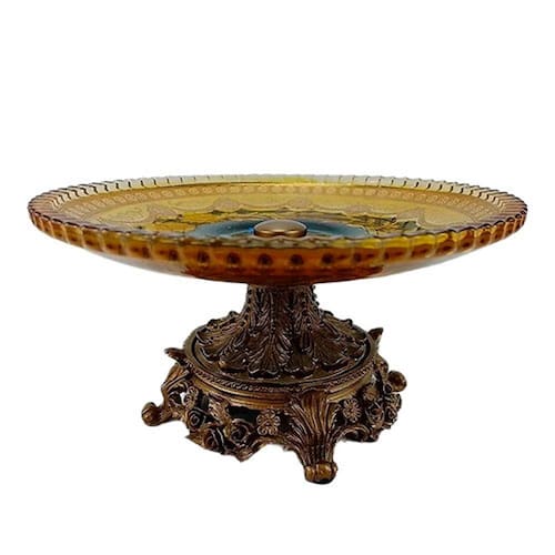 Este Centro de Mesa em Cristal Azul e Dourado com Detalhes em Bronze é a epítome da elegância para uma decoração verdadeiramente sofisticada. Se você busca uma peça que una o requinte do azul e do dourado com os detalhes em bronze, esta é a escolha perfeita.
