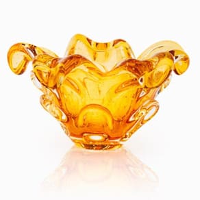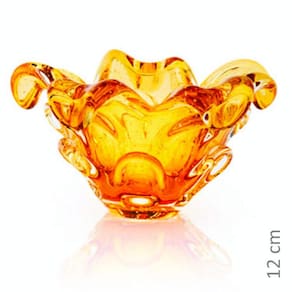 Centro De Mesa Em Cristal Murano Âmbar - São Marcos 25cm Centro De Mesa Em Cristal Murano Âmbar - São Marcos é uma peça decorativa produzida 100% artesanalmente com a técnica secular e originária da Itália, a qual com muita maestria e criatividade são desenvolvidas e preservadas no brasil pela Cristais São Marcos desde 1962. A tradição do cristal murano e a inovação em detalhes, formas e cores, trazem requinte para a decoração. O colorido do murano em especial, torna-se um coringa na hora de decorar e produz um efeito muito bonito em locais com luz natural, não dependendo de nenhum outro elemento para se destacar. As peças em cristal murano, são atemporais, aposte nelas como a estrela da decoração ou ainda para harmonizar em combinações com diferentes artigos para compor um ambiente. FICHA TÉCNICA Marca: São Marcos Modelo: Centro De Mesa Em Cristal Murano Âmbar - São Marcos Ref.: 4220AB Material: Cristal Murano Medidas A x C x L : 12 X 25 X 25 cm Peso: 3,240 Conteúdo Da Embalagem: 01 Centro De Mesa Em Cristal Murano Âmbar - São Marcos Junto com as peças em murano, leve ainda um pouco de história. Uma dica é misturar diferentes muranos e criar sua coleção de arte particular. O cristal murano, tornou-se objeto de desejo por suas características únicas. Sendo assim, com todas essas particularidades, ele é uma ótima escolha para decorar, colecionar e ainda presentear com classe e sofisticação. IMPORTANTE: Produto produzido de forma artesanal, são admitidas nas características finais do processo de produção desse produto pequenas variações de peso, formato, cor e ainda o aparecimento de minúsculas bolhas de ar, típicas do cristal murano.