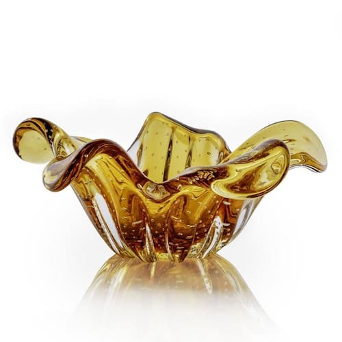 Centro De Mesa Em Cristal Murano Âmbar - São Marcos 26cm Centro De Mesa Em Cristal Murano Âmbar - São Marcos é uma peça decorativa produzida 100% artesanalmente com a técnica secular e originária da Itália, a qual com muita maestria e criatividade são desenvolvidas e preservadas no brasil pela Cristais São Marcos desde 1962.