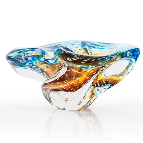 Centro De Mesa Em Cristal Murano Azul E Ambar São MarcosComprimento:20cmLargura:20cmAltura:10cmPeso:2730gProduzida 100% artesanalmente com a técnica secular e originária da Itália, a qual com muita maestria e criatividade são desenvolvidas e preservadas no Brasil pela Cristais São Marcos desde 1962. As escolhas das peças são versáteis e podem ser usadas para decorar casas e ambientes dos mais variados estilos. A tradição do Cristal Murano e a inovação em detalhes, formas e cores, trazem requinte para a decoração. O colorido do Muranoem especial, tornase um coringa na decoração e produzem um efeito muito bonito em locais com luz natural, não dependendo de nenhum outro elemento para se destacar. As peças em Cristal Murano, são atemporais, aposte nelas como a estrela da decoração ou ainda para harmonizar em combinações com diferentes artigos para compor um ambiente. Junto com as peças em Murano, leve ainda um pouco de história. Uma dica é misturar diferentes Muranos e criar sua coleção de arte particular. O cristal Murano, tornouse objeto de desejo por suas caracteristicas únicas. Sendo assim, com todas essas particularidades, ele é uma ótima escolha para decorar, colecionar e ainda presentear com classe e sofisticação.