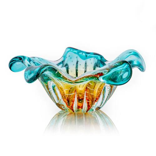 Centro De Mesa Em Cristal Murano Verde E Âmbar São Marcos Comprimento:26cm Largura:26cm Altura:10cm Peso:2340g Produzida 100% artesanalmente com a técnica secular e originária da Itália, a qual com muita maestria e criatividade são desenvolvidas e preservadas no Brasil pela Cristais São Marcos desde 1962. As escolhas das peças são versáteis e podem ser usadas para decorar casas e ambientes dos mais variados estilos. A tradição do Cristal Murano e a inovação em detalhes, formas e cores, trazem requinte para a decoração. O colorido do Murano em especial, torna-se um coringa na decoração e produzem um efeito muito bonito em locais com luz natural, não dependendo de nenhum outro elemento para se destacar. As peças em Cristal Murano, são atemporais, aposte nelas como a estrela da decoração ou ainda para harmonizar em combinações com diferentes artigos para compor um ambiente. Junto com as peças em Murano, leve ainda um pouco de história. Uma dica é misturar diferentes Muranos e criar sua coleção de arte particular. O cristal Murano, tornou-se objeto de desejo por suas características únicas. Sendo assim, com todas essas particularidades, ele é uma ótima escolha para decorar, colecionar e ainda presentear com classe e sofisticação. Ean: 7894728705537