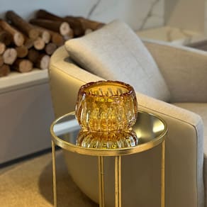 Beleza e sofisticação para qualquer ambiente. O Centro de Mesa Em Vidro Italy Âmbar Wolff é a peça perfeita para quem busca um toque refinado e acolhedor na decoração.