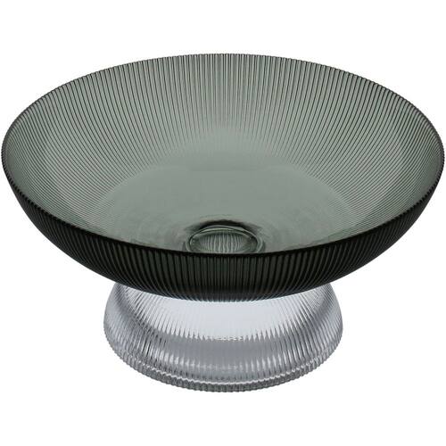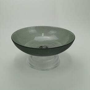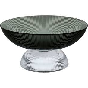Altura: 12 cm Largura: 25 cm Profundidade: 25 cm Peso: 1,24 Kg Diâmetro da Base: 14,5 cm Diâmetro do Corpo: 25 cm Diâmetro do Topo: 25 cm Material: Vidro Cor: Fumê