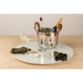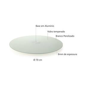 Centro de Mesa Giratório Ø 70cm em Vidro e Alumínio - Branco Perolizado - Forma Collection