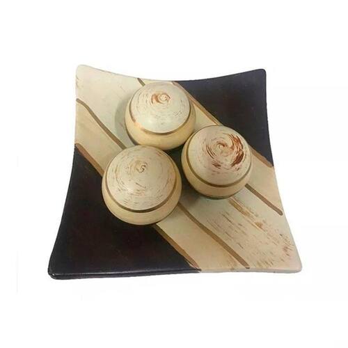 Centro De Mesa Prato 3 Esferas Em Cerâmica Bege E Marrom