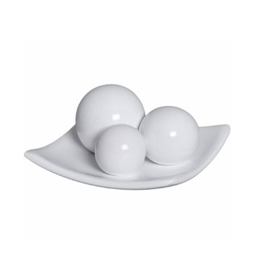 Centro de mesa prato 3 esferas em cerâmica decor - branca Centro de mesa prato com 3 esferas em cerâmica decorativa