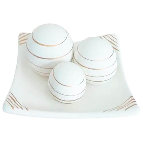 Centro de mesa prato 3 em cerâmica fosca decor - white gold Centro de mesa prato com 3 em cerâmica fosca premium decorativa Centro de mesa prato com 3 em cerâmica - linha fosca ecológica decorativa de alta qualidade e durabilidade com acabamento diferenciado, inspirador e moderno. O produto em cerâmica é uma belíssima peça atemporal, sendo ótimo para entusiastas e profissionais da decoração, pois garante charme, elegância, modernidade e sofisticação. Repagine e decore a sua casa, cozinha, sala de jantar, sala de estar, aparadores e mesas em gerais, deixando-as com um clima agradável, alegre e descontraído, sendo também uma ótima opção de presente. Dimensões: - altura: 12 cm x largura: 20 cm x comprimento: 20 cm. Características do produto: - centro de mesa prato com 3 em cerâmica ecológica de alta qualidade e durabilidade com pintura artesanal. - produzido por artesões profissionais seguindo um padrão de qualidade que atenda o gosto dos nossos clientes Cuidados: - recomendamos o uso de pano levemente umedecido para sua limpeza. do produto: - o produto é muito bem acomodado dentro da caixa, e super embalado para evitar quebras, ainda assim possuímos um sistema de e troca. Imagens meramente ilustrativas - produto artesanal, podendo variar de cor e/ou tonalidade Marca: Retrofenna Decor