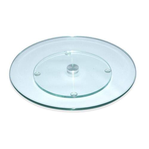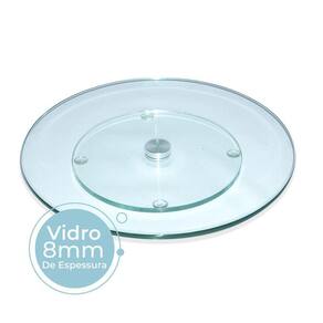 Altura: 2cm Diâmetro: 40cm Base giratória: 3,5cm Espessura do vidro: 8mm Material: vidro e rolamento de alumínio Suporta até 10kg Cor: cristal