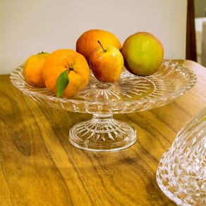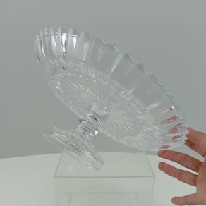 Altura: 10,4 cm Largura: 29,5 cm Profundidade: 29,5 cm Peso: 1,62 Kg Diâmetro da Base: 10,9 cm Material: Vidro Cor: Transparente