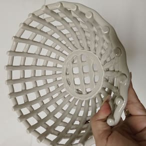 Altura: 11 cm Largura: 22 cm Profundidade: 22 cm Espessura: 1 cm Peso: 0,77 Kg Diâmetro da Base: 10 cm Diâmetro do Corpo: 22 cm Diâmetro do Topo: 20,5 cm Material: Ceramica Cor: Marfim