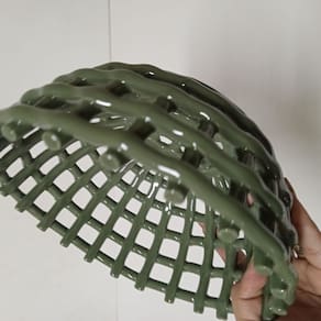 Altura: 11 cm Largura: 21,5 cm Profundidade: 21,5 cm Espessura: 1 cm Peso: 0,74 Kg Diâmetro da Base: 10 cm Diâmetro do Corpo: 21,5 cm Diâmetro do Topo: 20 cm Material: Ceramica Cor: Verde