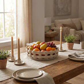 Altura: 6 cm Largura: 21 cm Profundidade: 21 cm Peso: 0,73 Kg Diâmetro da Base: 18 cm Diâmetro do Corpo: 21 cm Diâmetro do Topo: 20,5 cm Material: Ceramica Cor: Marfim