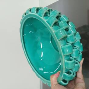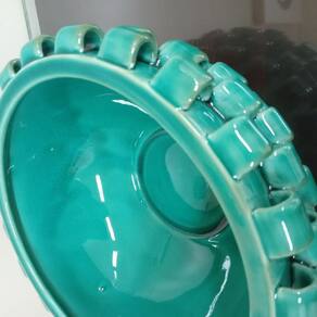 Altura: 12,5 cm Largura: 28 cm Profundidade: 28 cm Peso: 2,53 Kg Diâmetro da Base: 12 cm Diâmetro do Corpo: 28 cm Diâmetro do Topo: 22,5 cm Material: Ceramica Cor: Verde
