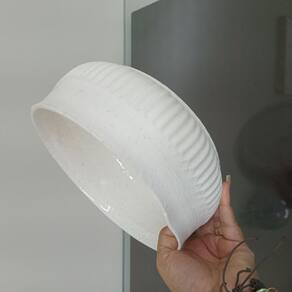 Altura: 8,5 cm Largura: 20,5 cm Profundidade: 20,5 cm Peso: 1,19 Kg Diâmetro da Base: 18,5 cm Diâmetro do Corpo: 20,5 cm Diâmetro do Topo: 20,5 cm Material: Ceramica Cor: MARFIM