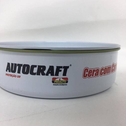Cera automotiva em pasta autocraft 200g proautoA cera autocraft com proteção uv proporciona máximo brilho e proteção ao seu veículo.Contém em sua fórmula silicones especiais que formam uma película protetora que repele sujeira e protege contra as ações do tempo como sol, chuva, maresia, etc.É indicada para todos os tipos de pintura.Modo de usar:- lavar o veículo e secá-lo.- transferir uma quantidade suficiente da cera para outro recipiente e nunca retornar o produto usado para a embalagem original.- aplicar em pequenas áreas de cada vez com movimentos circulares, usando um pano ou algodão levemente umedecidos.- deixe secar por alguns minutos. Dê o brilho com outro pano seco e limpo.- recomenda-se usar a sombra.