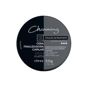 Cera charming capilar 50g matte extra forte - kit com 2 unidades Descrição A cera charming matte extra forte foi desenvolvida para quem busca controle absoluto dos fios com acabamento natural e sem brilho. Ideal para modelar penteados com longa duração, ela oferece fixação extra forte sem deixar resíduos ou aspecto oleoso. Sua textura leve permite fácil aplicação, definição e remodelagem ao longo do dia. Indicado para todos os tipos de cabelo, especialmente os curtos e médios. Modo de uso Com o cabelo limpo e seco ou levemente úmido , coloque uma pequena quantidade da cera nas mãos, esfregue bem entre os dedos para aquecer o produto e facilitar a aplicação. Modele os fios conforme o estilo desejado. Se necessário, reaplique em pequenas quantidades. Pode ser diariamente.
