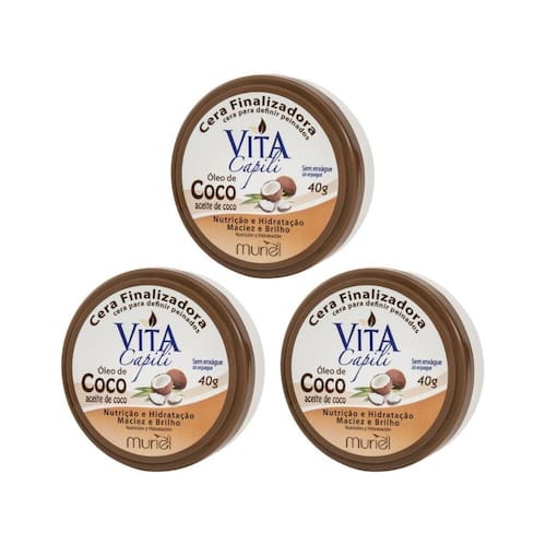 Descrição: A Cera Finalizadora Capilar Muriel de 40g com aroma de coco é um produto versátil e eficaz para cuidar dos seus cabelos. Esta cera proporciona uma finalização perfeita para seus penteados, conferindo brilho, definição e controle aos fios. A fórmula da cera é enriquecida com o delicioso aroma do coco, que deixa os cabelos com um perfume agradável e fresco. Além disso, a textura leve e não oleosa da cera permite uma aplicação fácil e uniforme, sem deixar resíduos indesejados nos cabelos. Com a Cera Finalizadora Capilar Muriel de coco, você pode criar diversos estilos de penteados, desde os mais despojados até os mais sofisticados, garantindo um visual impecável ao longo do dia. Seus cabelos ficarão macios, sedosos e com um brilho natural, além de estarem protegidos contra o frizz e a umidade. Ideal para todos os tipos de cabelo, a Cera Finalizadora Capilar Muriel de 40g com aroma de coco é um aliado indispensável para quem busca cabelos bonitos e bem cuidados. Experimente e desfrute de cabelos incríveis com um toque tropical de coco. Modo de Usar: Comece com o cabelo limpo e seco. Lave e condicione o cabelo conforme o costume e seque-o com uma toalha para remover o excesso de umidade. Abra a embalagem da Cera Finalizadora Capilar Muriel de Coco e retire a quantidade desejada de produto com os dedos. A quantidade pode variar dependendo do comprimento e da espessura do seu cabelo. Comece com uma pequena quantidade e adicione mais se necessário. Esfregue a cera entre as mãos para aquecê-la e amolecê-la. Aplique a cera nos cabelos, concentrando-se nas áreas que você deseja modelar, definir ou controlar. Pode ser nas pontas para dar forma ou em todo o cabelo para um acabamento mais brilhante. Modele o cabelo de acordo com o estilo desejado, usando os dedos ou um pente. A cera ajudará a fixar o penteado no lugar. Evite aplicar a cera na raiz do cabelo, pois isso pode deixá-lo com aspecto oleoso. Depois de modelar o cabelo como desejar, deixe a cera secar e definir. Não é necessário enxaguar.