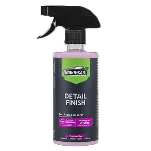 Cera Finalizadora Para Repintura Detail Finish Nobrecar É uma cera rápida à base de carnaúba de fácil aplicação que promove brilho, toque aveludado e proteção por até 20 dias. Pode ser utilizada em qualquer situação que está a pintura, inclusive repintura, pois deixa os poros transpirarem. Remove os resíduos de pó de polidor, dando brilho e um toque aveludado surpreendente. Ean: 7898961406657