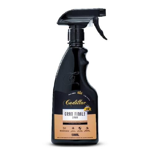 Cera Híbrida Spray Proteção de 4 meses Gran Finale 500ml CadillacA Gran Finale é a evolução das ceras. Sua formulação possui concentração máxima de polímeros sintéticos de última geração que vão proporcionar proteção de até 4 meses, resistência a químicos, proteção UV e espetacular repelência à água. Essa tecnologia combinada as ceras de carnaúba tipo exportação e cera de abelha vão agir resgatando o brilho e a intensidade de cor da superfície. Características:- Fácil Aplicação- Experiência descomplicada- Alta concentração de polímeros sintéticos- Alto Rendimento- Proteção por até 4 meses Modo de Uso:1 - Aplique a cera Spray sobre a superfície fria do veículo2 - Espalhe a cera com uma flanela de microfibra limpa3 - Com outra flanela seca e limpa remova o excesso e dê brilhoObs: Não aplicar de baixo de sol ou com a lataria quente. Conteúdo: 500ml
