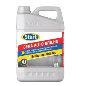 Cera Auto Brilho Start 5L Proteção e Brilho para Pisos A Cera Auto Brilho Start foi desenvolvida para realçar a beleza natural do piso, proporcionando brilho duradouro e facilidade na manutenção. Sua fórmula forma uma camada protetora que ajuda a evitar o acúmulo de sujeira, tornando a limpeza muito mais prática. Ideal para lajotas, cerâmicas, pisos sintecados, vulcapisos, paviflex e mármore, ela cria um acabamento uniforme, transparente e resistente, sem necessidade de polimento. Benefícios do Produto Rendimento de até 40 m por litro aplicado. Base acrílica que garante brilho e resistência ao tráfego. Facilita a limpeza diária, evitando a de sujeiras. Pode ser Utilizado em diversos ambientes, com acabamento estável e seguro. Fórmula sustentável: produto biodegradável. Não requer uso de enceradeira. Informações Técnicas Aspecto: Líquido leitoso Cor: Branco Odor: Suave Ph: 7,5 8,9 Teor de sólidos: 10% Validade: 36 meses Conteúdo: 5 litros Você Vai Receber 1 unidade de Cera Auto Brilho Start 5L. Modo de Uso Certifique-se de que o piso esteja limpo e seco antes da aplicação. Aplique uma camada fina e uniforme com pano ou aplicador. Aguarde de 20 a 30 minutos para secar. Repita o processo para uma segunda camada. Para manutenção, limpe o piso com detergente neutro.