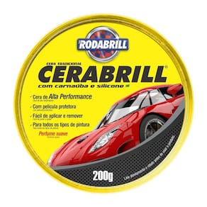 - Marca: Rodabrill; - Cera de alta performance - Com carnaúba e silicone; - Com película protetora; - Fácil aplicação e remoção; - Para todos os tipos de pinturas e cores.