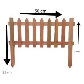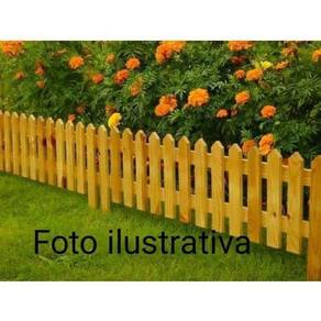 Cerca de Madeira 50 x 35 ATENÇÃO Este anúncio acompanha 04 Cerca de 50 x 35 sendo 2 metros de cerca Para fazer maior e só ir adicionando no carrinho a quantidade desejada. Utilizamos madeira eucalipto tratada. Nosso Acabamento é de alto padrão de qualidade, todas as peças são lixadas e revisadas o que irá valorizar ainda mais o ambiente do seu jardim. Medidas: Altura de 35 cm Largura total 50 cm Barra interna 25 cm Espaço entre as ripas 3cm Fixada em uma profundidade de 10 cm, fica com 25 cm de altura. Instruções de Instalação: 1 Molhe o local onde as cercas serão instaladas para facilitar a entrada dos pesinhos da cerca na terra. 2 Posicione a Cerca no local desejado. 3 Bata com uma madeira levemente nos 2 lados da Cerca até firmar. 4 Alinhe e instale as outras peças da mesma maneira. Pronto suas cercas estão instaladas.