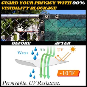 Tamanhos personalizados levarão de 2 a 3 dias úteis. - Medida: A altura real é de 1,22 m, feita para caber perfeitamente na cerca de 5 rodapés. - Durável: o tecido é respirável, o que permite a passagem da brisa, feito de HDPE de grau comercial resistente a UV e à água (polietileno de alta densidade), feito para durar sob exposição ao sol e todas as condições climáticas. - Privacidade: 90% de bloqueio dá a você a privacidade que você merece, não completamente blackout, mas a quantidade certa de privacidade e bloqueio. - Instalação: As bordas são finalizadas com encadernação preta resistente e ilhós de latão inoxidável, 4 ilhós em cada canto, outros ilhós são colocados uniformemente ao longo das bordas, 30 cm de distância nas bordas verticais, 61 cm de distância nas bordas horizontais. - Garantia: 3 anos de garantia limitada, existem muitas maneiras diferentes de usar: proteção para plantas de horta, cobertura de casa negra, bloqueio de vento para área de viveiro de plantas, persianas, quadra de tênis, persianas para caneta/canil de animais de estimação, canteiro de obras, etc. O tecido de tecelagem respirável permite que a água e o ar passem livremente, resistente a UV e água, sem necessidade de manutenção.